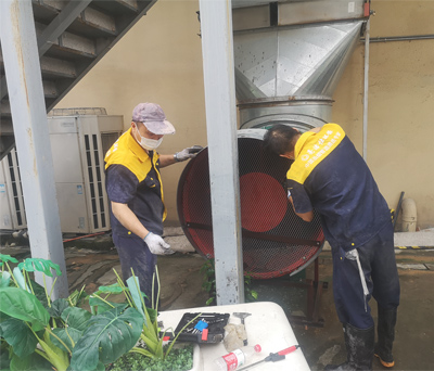 工作人员利用专业设备对灶具、排油烟罩口、排油烟管道转角处等依次拆除清洗;尤其对平时看不到的烟道里面、转角等处的油垢做了全面的清除,以保持排油烟设施的清洁,防止火灾事故的发生。